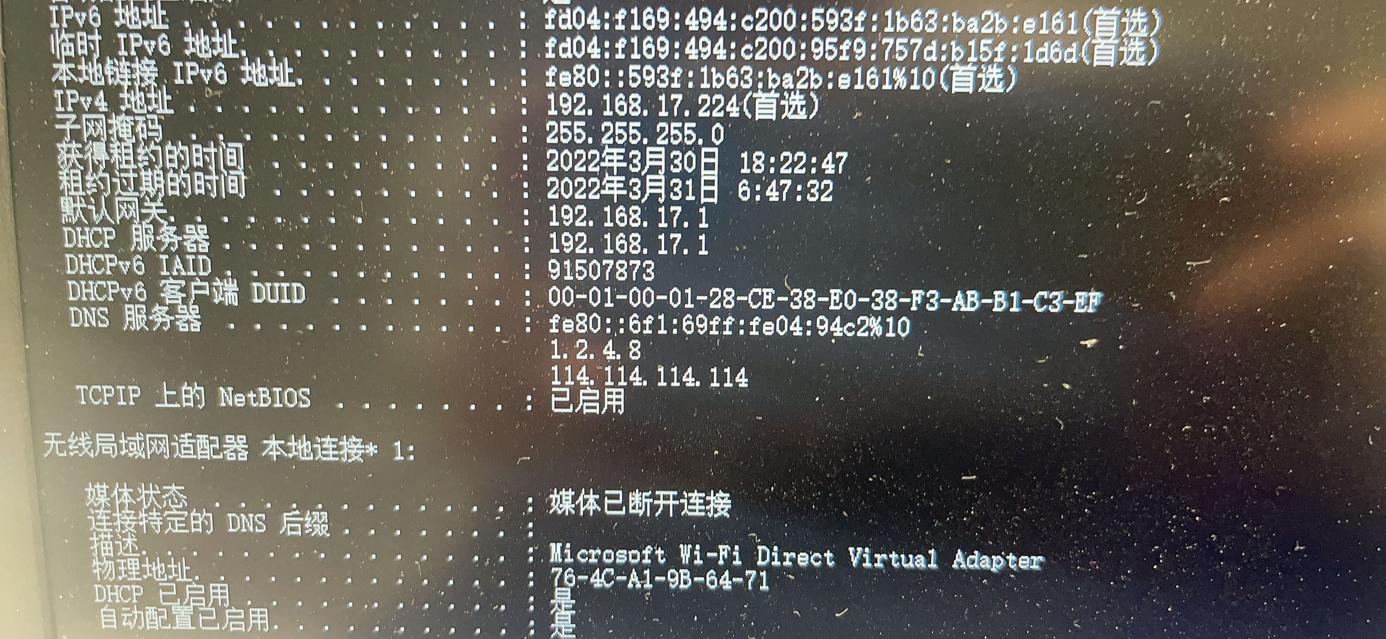 一番尝试,未果,又去 Google 类似问题,希望找到 Windows 多出来的 IPv6 地址、DNS 等是哪里出来的,也几乎没在网上找到有效的信息。