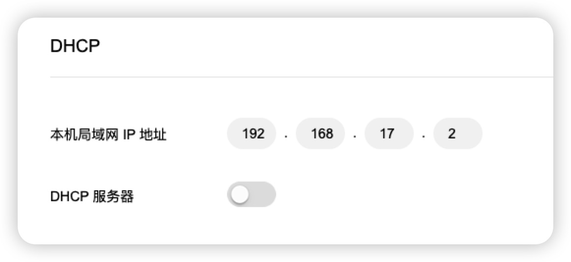 关闭的 DHCP 开关:
