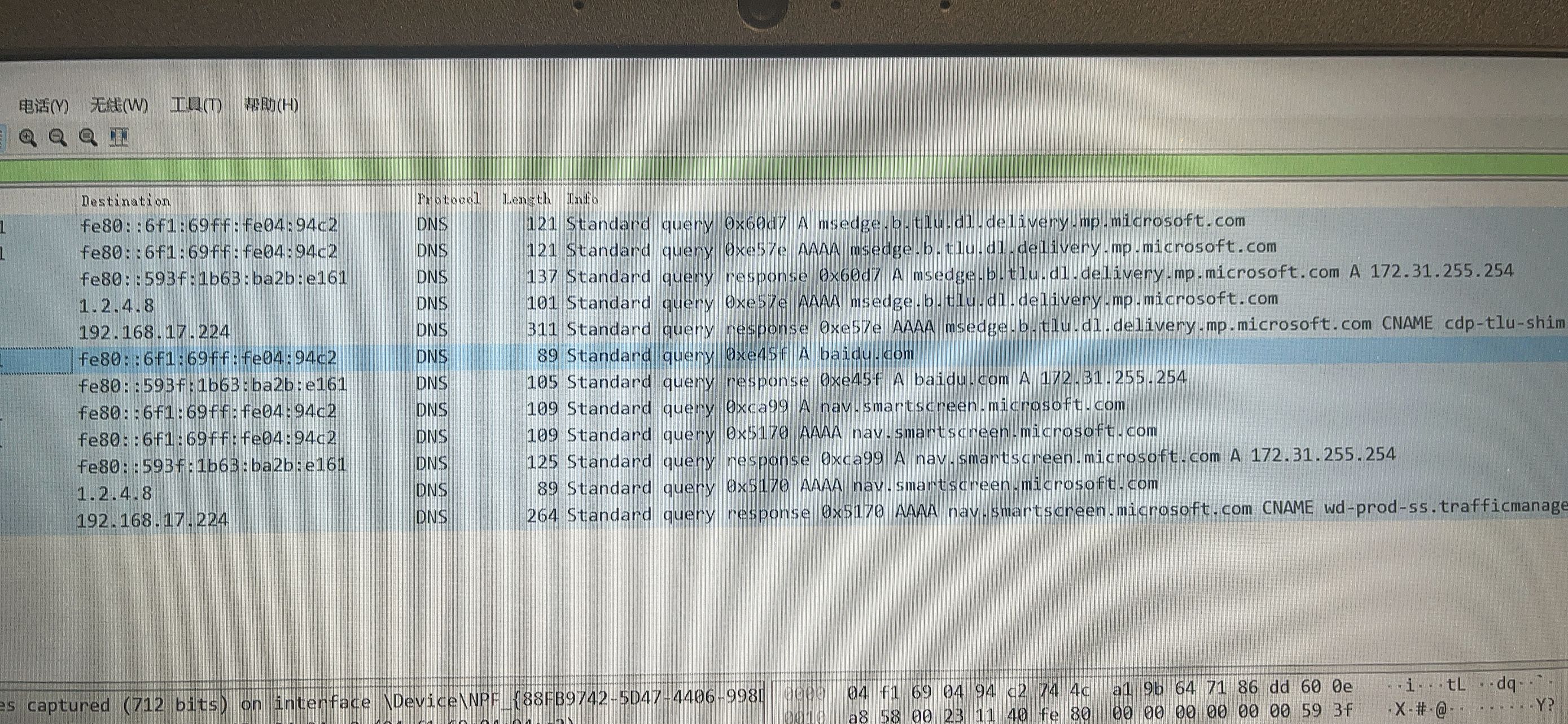 这就邪门了,于是又找出备用的 Windows,它也同样上不去网,安装 Wireshark 后,发现 DHCP 和 Mac 上相同,也没和 IPv6 沾边。